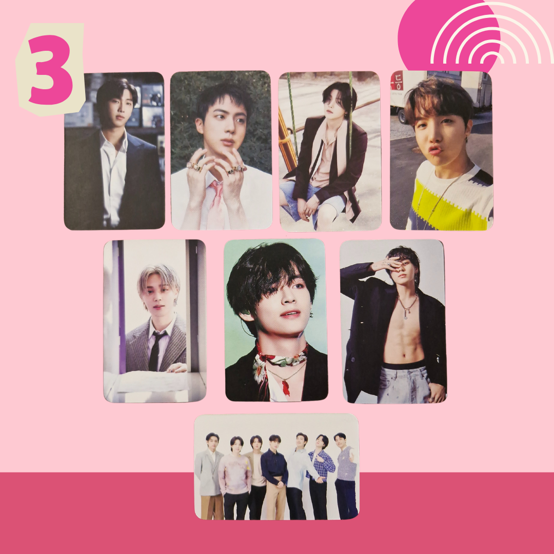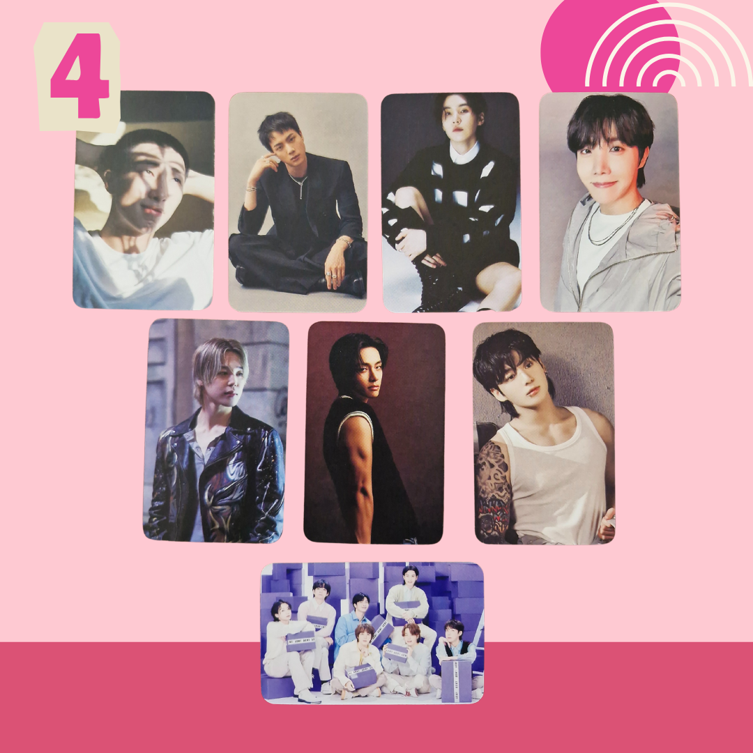 Includes 8 double-sided photocards Standard size: 5.5cm × 8.5cm. Gloss finish. Clear & High Quality images. Please note: These photocards are unofficial.