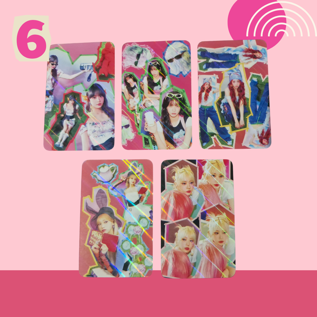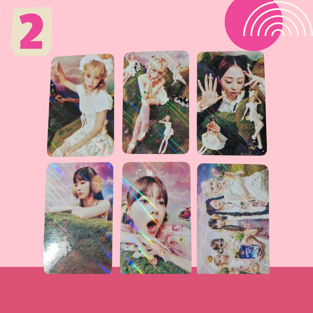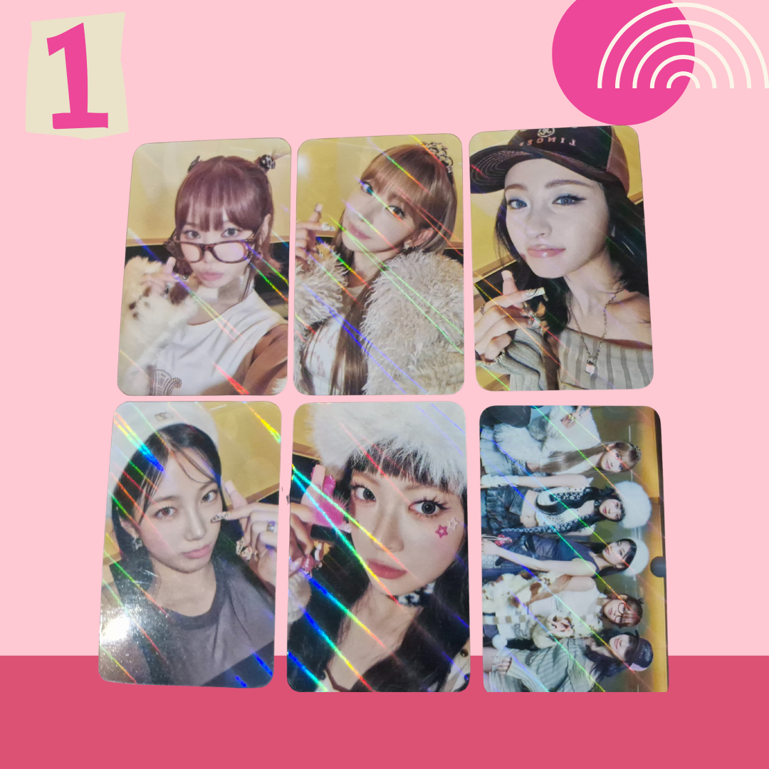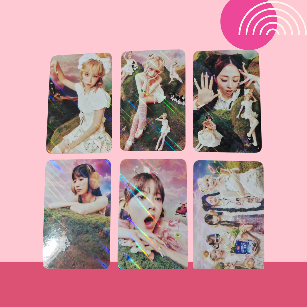 Includes 5-6 double-sided photocards (quantity dependent on pack). Standard size: 5.5cm × 8.5cm. Gloss finish, Holographic & Double-sided. Please note: These photocards are unofficial.