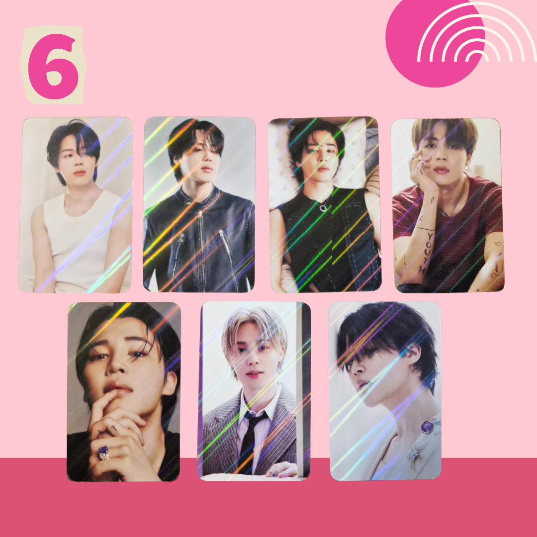 Includes 7 double-sided holographic photocards  Standard size: 5.5cm × 8.5cm. Gloss finish & Double-sided. Please note: These photocards are unofficial.