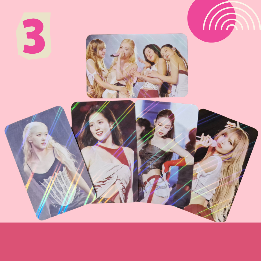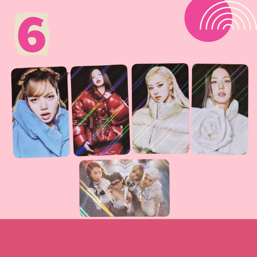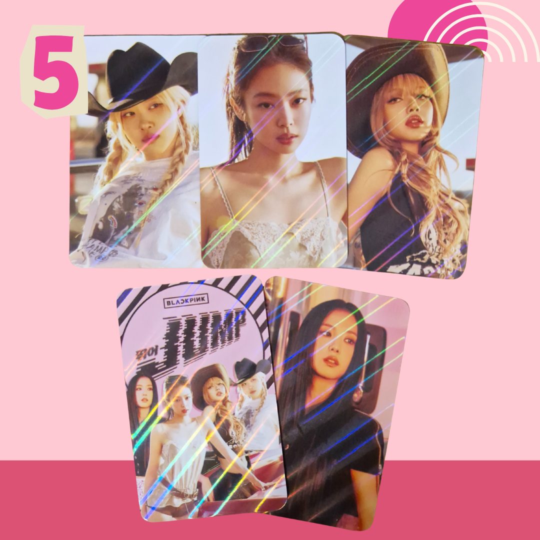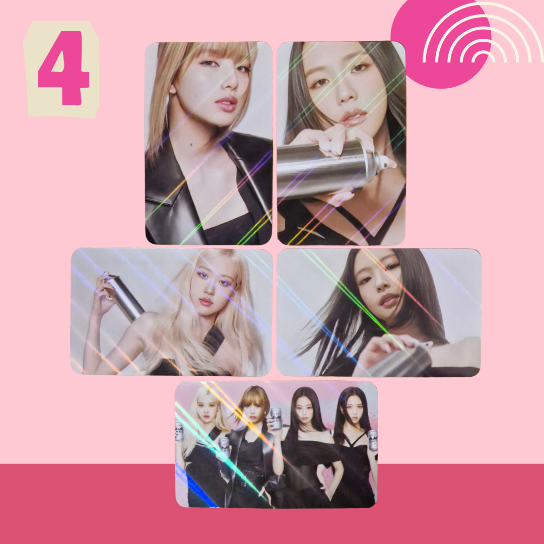 Includes 5 double-sided photocards. Standard size: 5.5cm × 8.5cm. Gloss finish & Holographic. Clear & high-quality images on both sides. Please note: These photocards are unofficial.