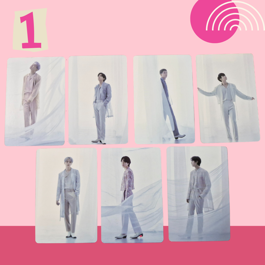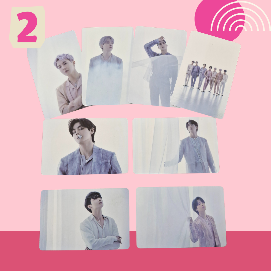 Includes 7-8 double-sided photocards (quantity dependent on pack). Standard size: 5.5cm × 8.5cm. Gloss finish & Double-sided. Please note: These photocards are unofficial.
