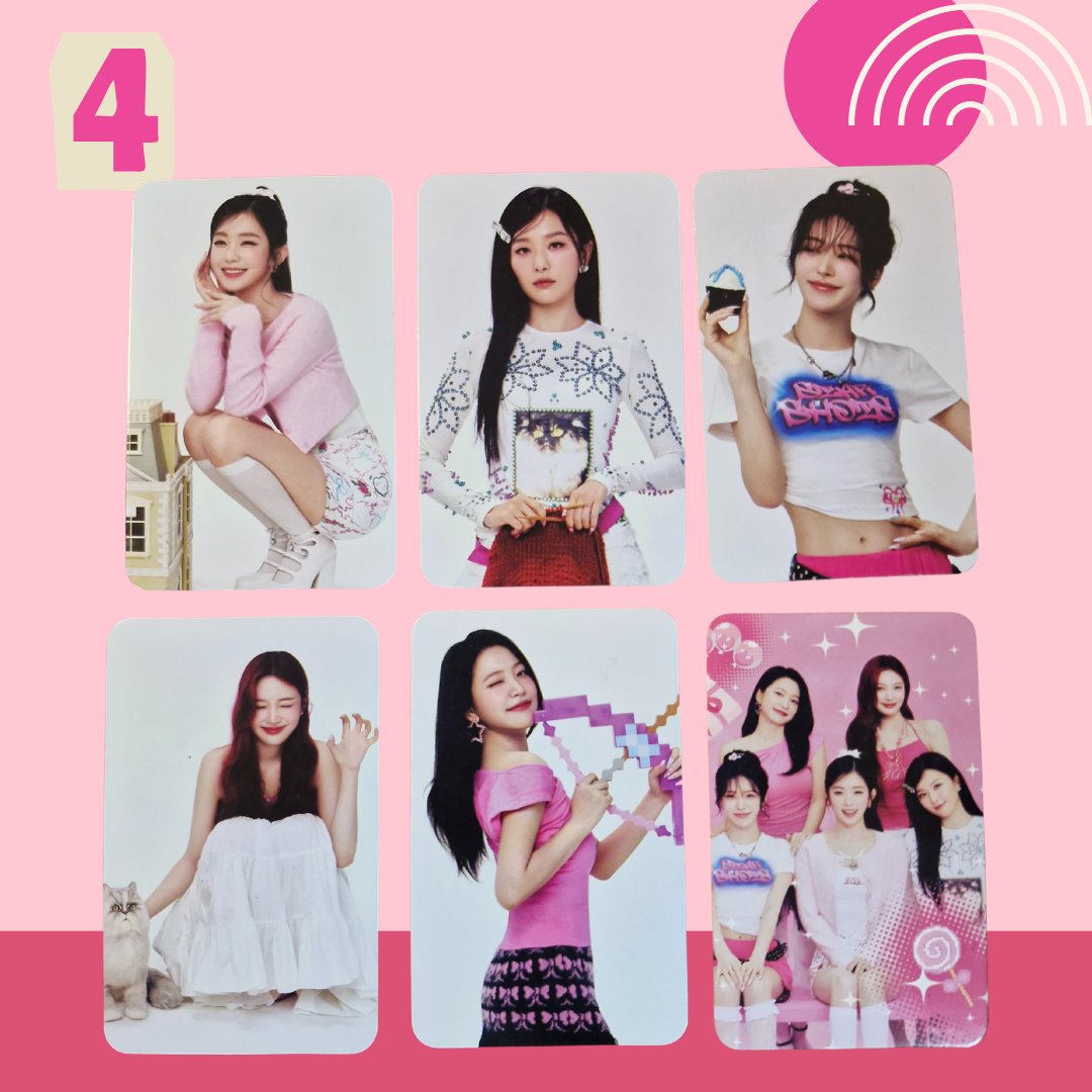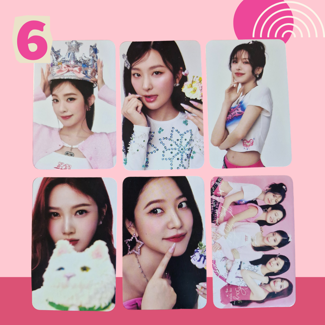 Includes 6 double-sided photocards  Standard size: 5.5cm × 8.5cm. Gloss finish & Double-sided. Please note: These photocards are unofficial.